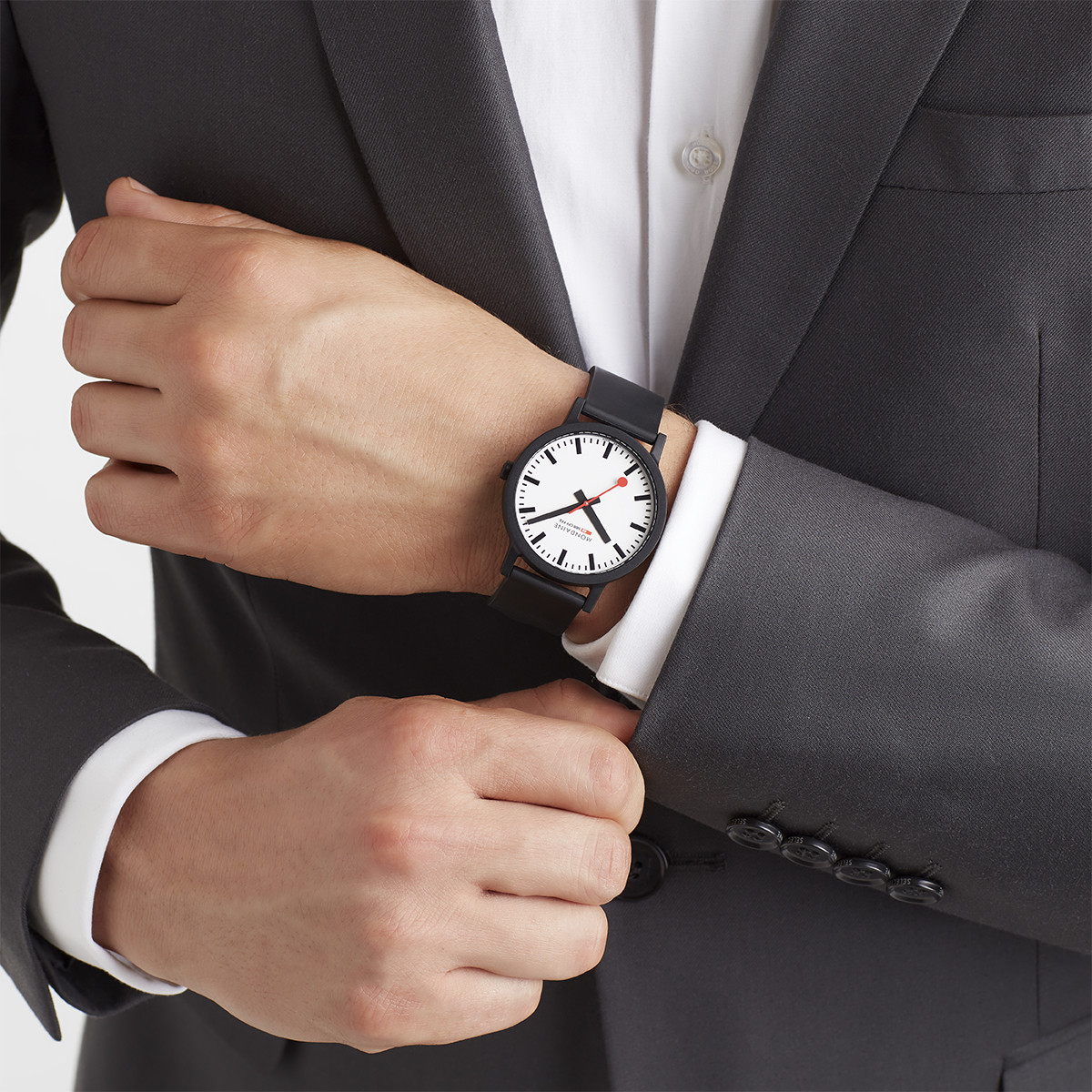 Mondaine es una de las marcas suizas de gran renombre en la fabricación de relojes. Sus diseños están influenciados por los clásicos relojes ferroviarios de Suiza y se caracterizan por un diseño sobrio y una clásica manecilla roja terminada en círculo.