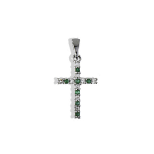 CRUZ ORO CON 9 DIAMANTES Y 7 ESMERALDAS